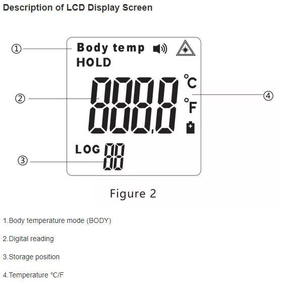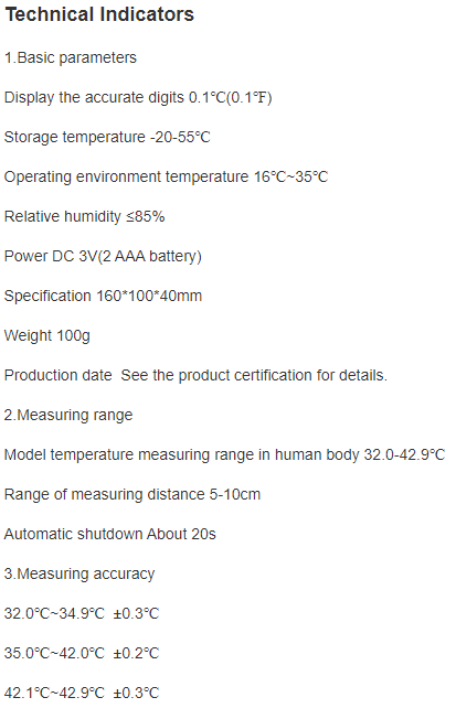 Akustický signál pri nameraní teploty, bezdotykové meranie teploty zo vzdialenosti 1 – 10cm, podsvietený LCD displej v troch farbách: zelená farba – normálna teplota, žltá farba – horúčka, červená farba – vysoká horúčka, alarm vysokej horúčky, tichý režim merania vhodný najmä na meranie teploty u detí počas spánku.