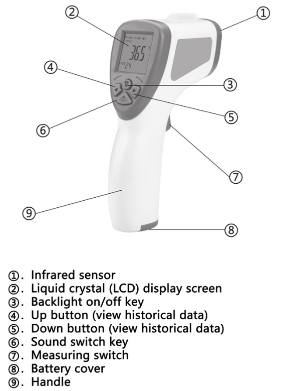 Bezkontaktný digitálny teplomer – na meranie teploty ľudského tela aj povrchovej teploty prostredia, povrchov alebo kvapalín.